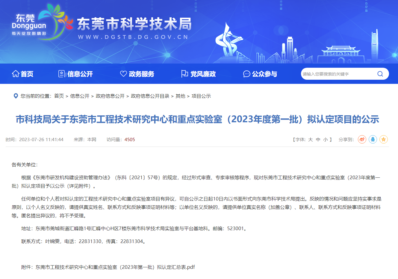 喜讯|广东星空网官方站入口通过东莞市工程技术研究中心认定 近日,东莞市科学技术局发...